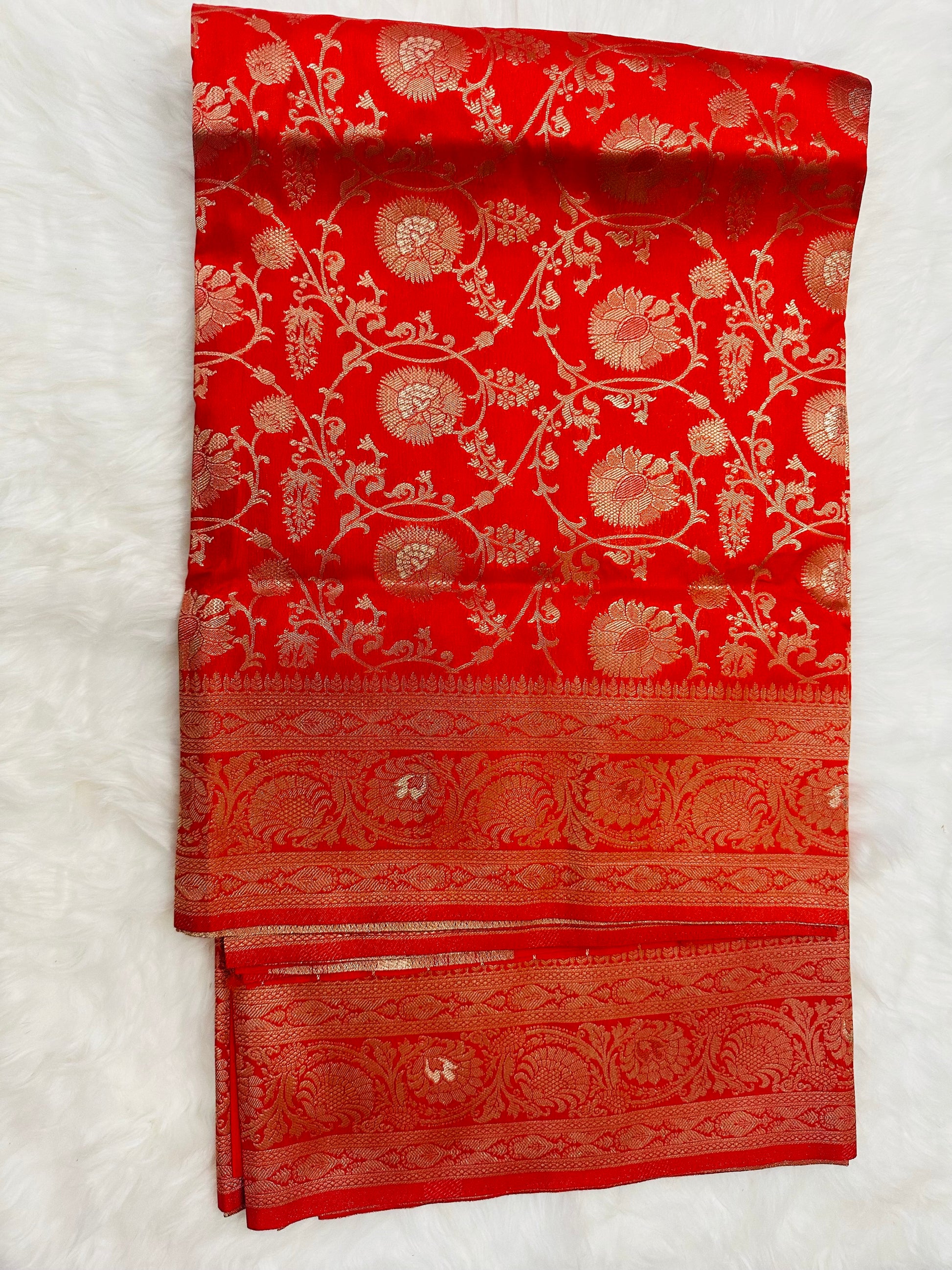 Banaras orange allover georgette saree with rich pallu and blouse ✨