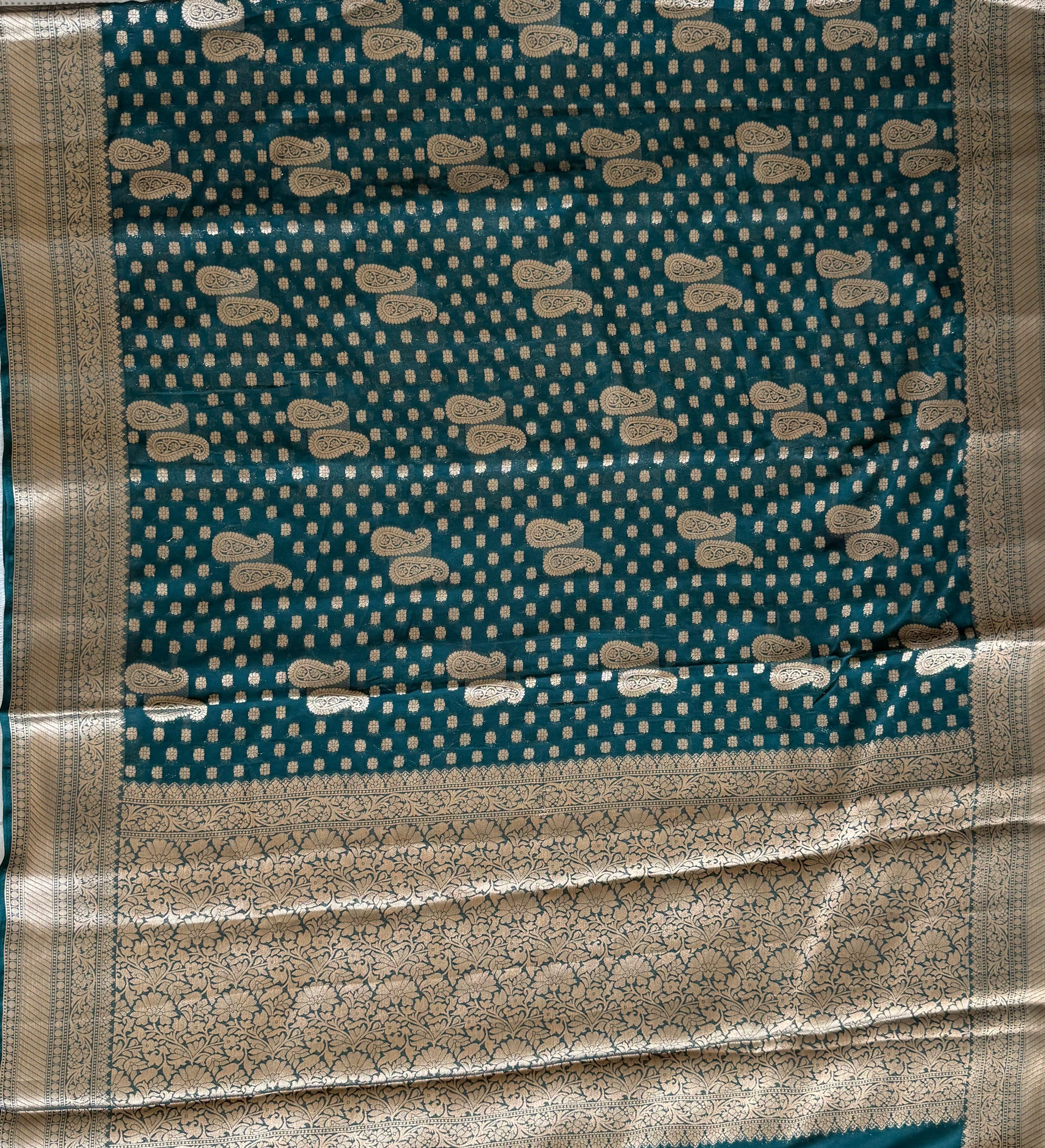 DARK GREEN GEORGETTE SOFT SAREE GOLD WEAVING WITH BLOUSE ✨