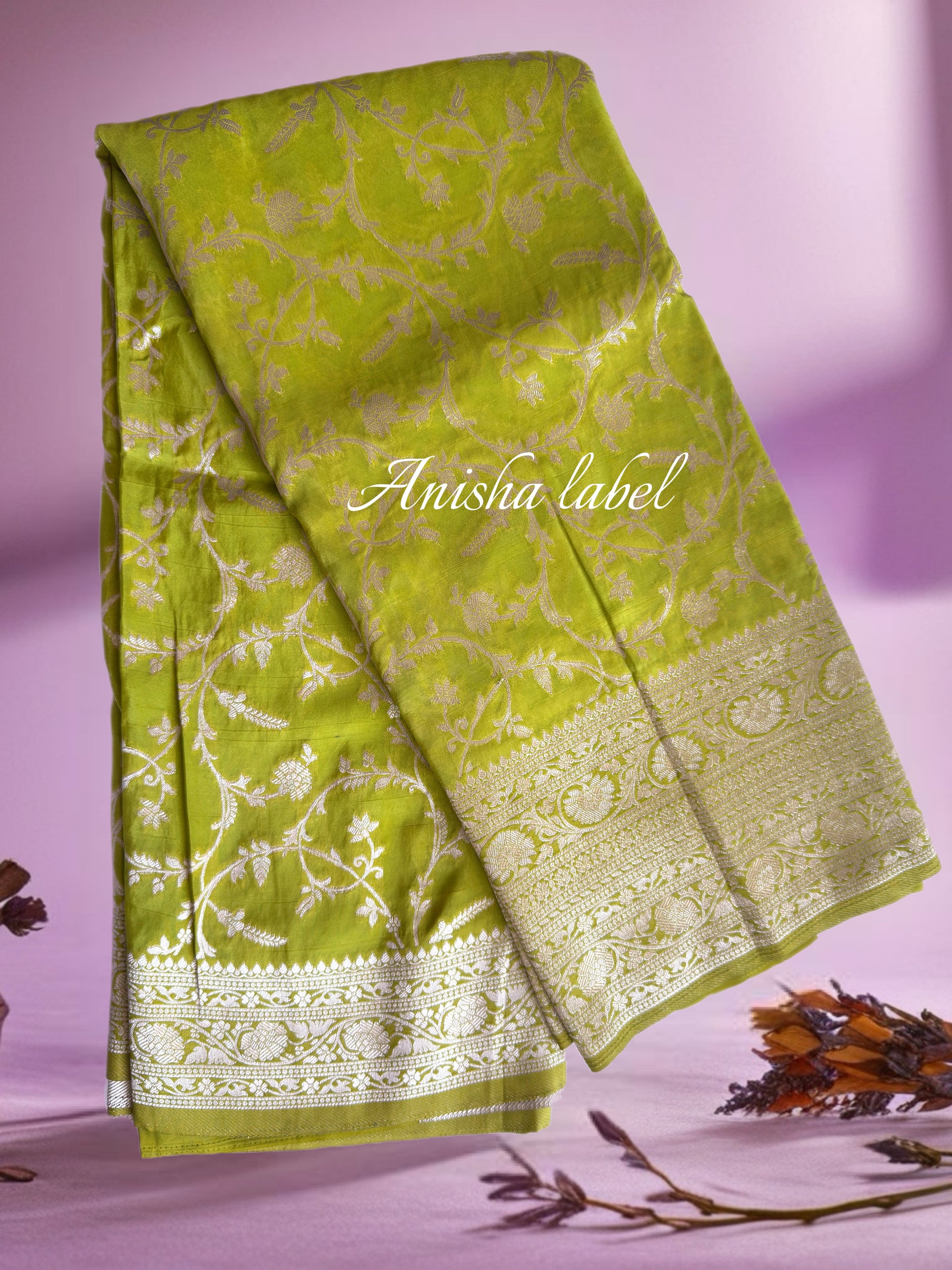 MEHENDI GREEN BANARASI GEORGETTE SAREE ALLOVER ZARI WEAVING RICHPALLU WITH BLOUSE✨