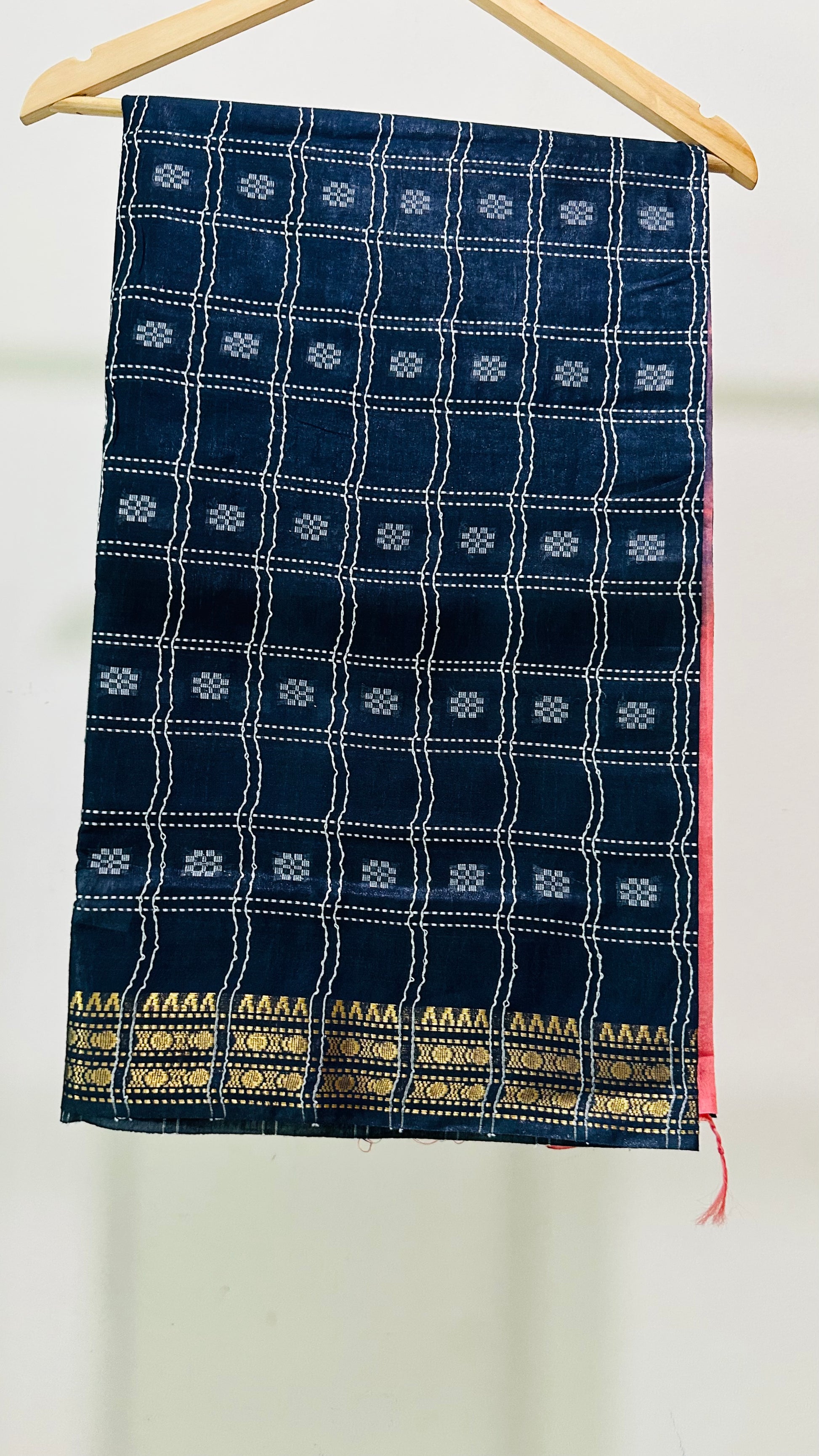 Navy blue and babypink pallu and gold zari weaving buttas saree with blouse 💙
