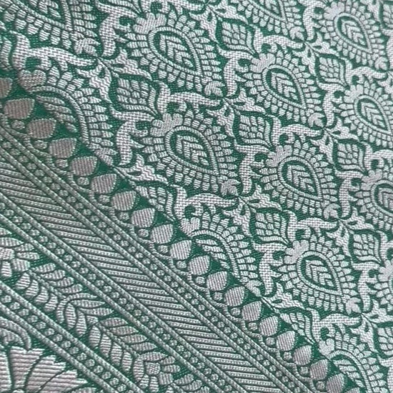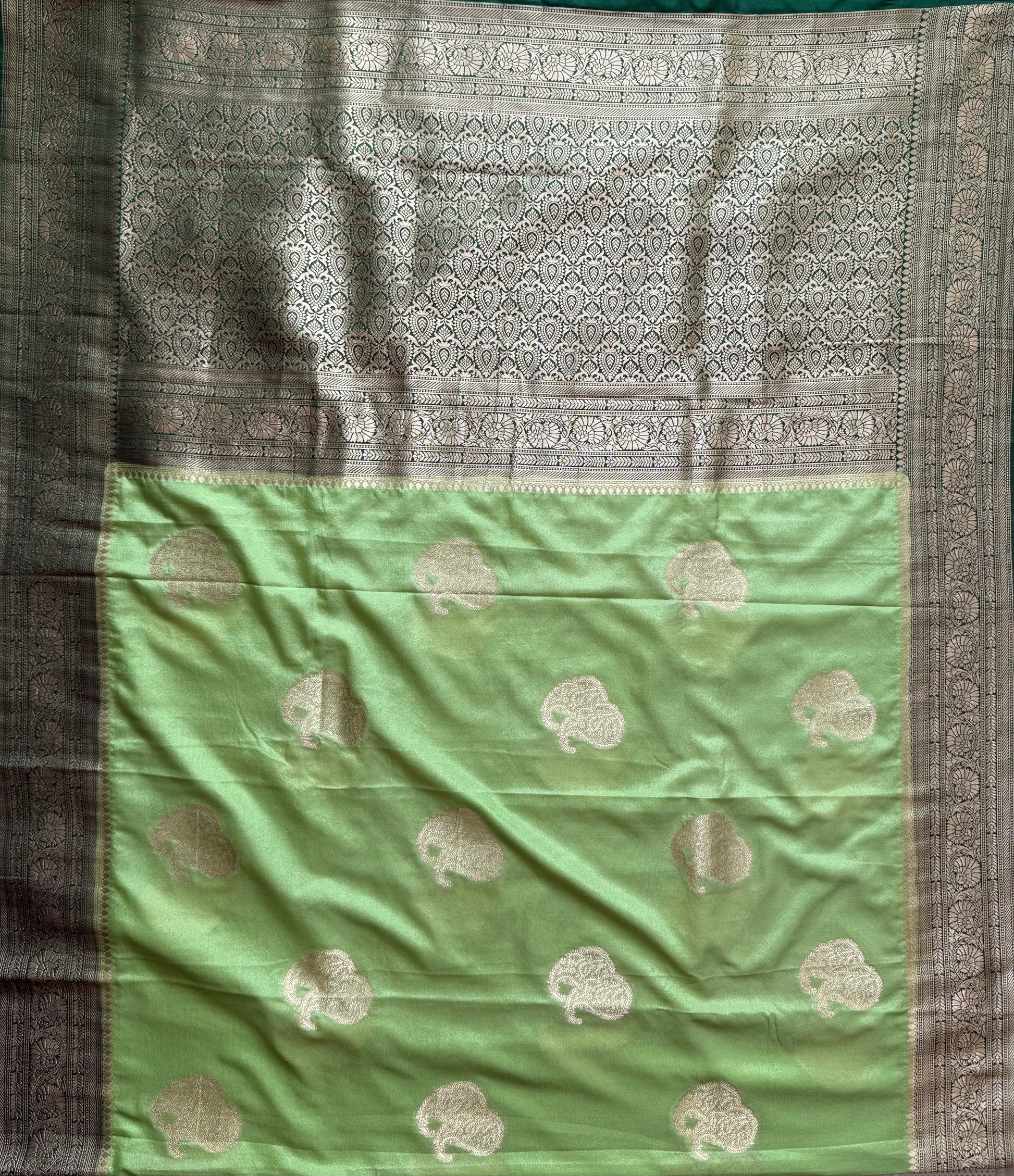 STUNNING COMBINATIONS PASTEL GREEN AND DARK-GREEN BANARASI ALLOVER GOLD ZARI WEAVING WITH RICHPALLU AND BLOUSE WITH SMALL BUTISSâ¨